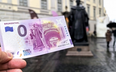 „Bancnota Euro Brukenthal” poate fi cumpărată începând de vineri de la magazinul Palatului Brukenthal din Piața Mare. Costă 30 de lei