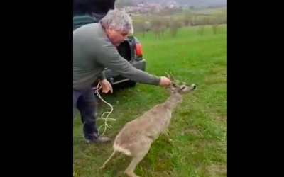VIDEO – Căprior salvat de vânătorii sibieni dintr-o mlaștină și eliberat la Bradu