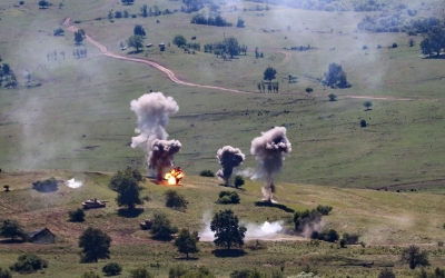 FOTO Începe în poligonul din Daia un amplu exercițiu militar: drone, avioane, elicoptere, tancuri și obuziere