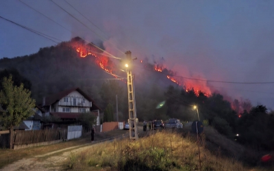 Incendiu pe 40 de ha în zona muntoasă a localității Racovița, de pe Valea Oltului. Intervin peste 100 de pompieri, pădurari și voluntari