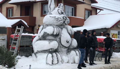 VIDEO. Iepuraş de zăpadă înalt de 2,5 metri, în Prahova