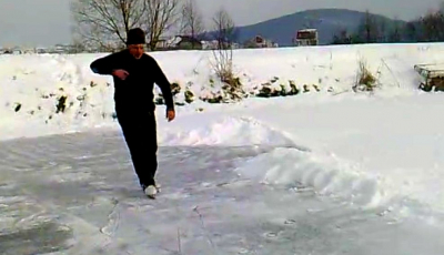 FOTO - Un cisnădian a făcut patinoar la Șopa. Invită pe oricine, pe risc propriu, cu prețul unui ”ștampăr” de răchie