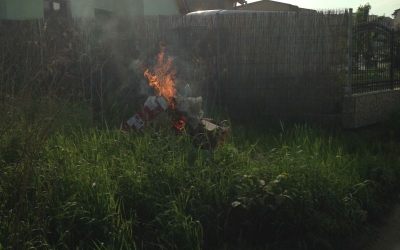 FOTO Prea ca la tara. Un barbat din Selimbar si-a scos TV-ul vechi si i-a dat foc pe marginea drumului