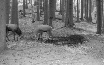 Imagini inedite în Parcul Național Piatra Craiului. Doi cerbi tineri își măsoară forțele, în joacă