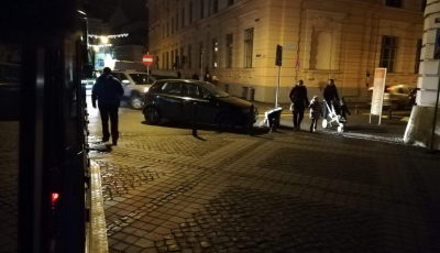 FOTO VIDEO | Un șofer și-a parcat mașina fix în fața pilonului de intrare în Piața Mare