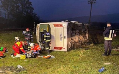 Un bărbat a murit, după ce un autocar cu 30 de persoane s-a răsturnat, la Bistrița