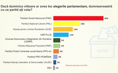 Sondaj CURS: PNL, UDMR și USR PLUS, împreună, au mai puțin decât PSD