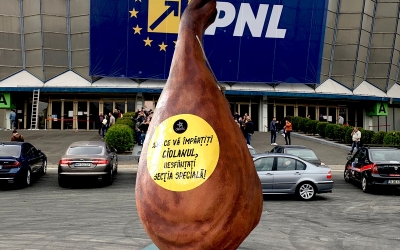 VIDEO Un ciolan uriaș a fost amplasat, în semn de protest, la Congresul PNL