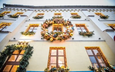 Primele clădiri împodobite de Crăciun, la Sibiu: coroniță de trei metri și jumătate, un trabant cu luminițe și ghirlande voluminoase. „Ne dorim să sărbătorim împreună cu cei care ne vizitează”
