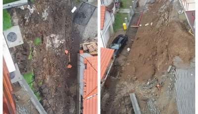ACTUALIZARE. Alunecarea de teren surprinsă parțial de camerele de supraveghere. Zidul de sprijin era ridicat fără autorizație | VIDEO