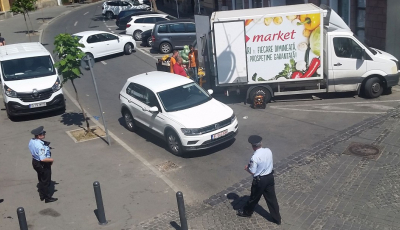 FOTO-VIDEO A lăsat mașina ”pe avarii” în mijlocul drumului și a plecat. În centrul istoric