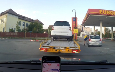 Șofer filmat din elicopter, apoi amendat de Poliția Română. A depășit în curbă, pe linie continuă