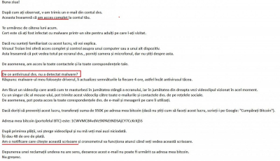 CERT.RO: Tentative de fraudă cu e-mailuri false. Țintele sunt anunțate că ar fi vizitat site-uri cu conţinut pornografic