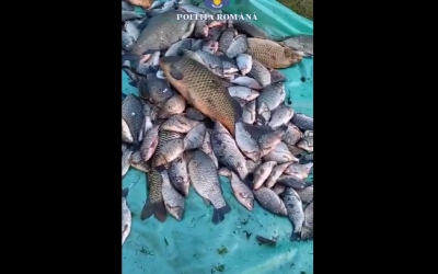 Pescuit în prohibiție, pe Olt. Polițiștii le-au confiscat mașina, 200 kg de peşte, o barcă pneumatică și o mie de metri de plase
