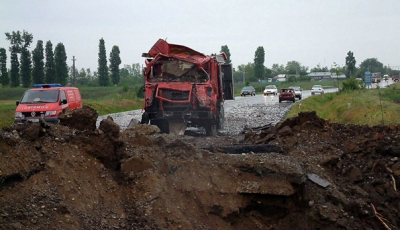 TIR încărcat cu 800 de butelii a luat foc la Mihăileşti