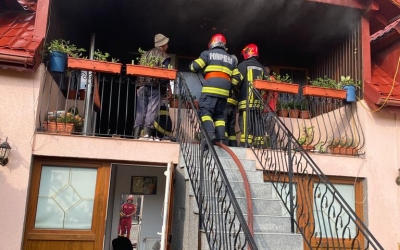 Incendiu într-un apartament de la etajul 4, în Cisnădie. 30 de locatari s-au autoevacuat
