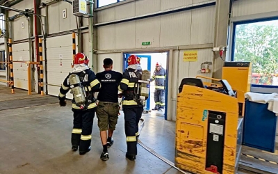 Pompierii sibieni desfășoară un exercițiu la o firmă din Zona Industrială Est
