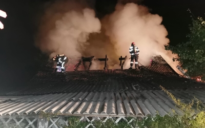 Un incendiu izbucnit de la un scurtcircuit a distrus acoperișul unei case