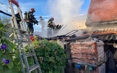 Incendiu în Sădinca, la o anexă gospodărească și acoperișul unei case, din cauza unui cablu electric defect