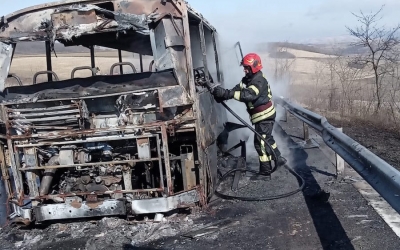 Incendiu la un autobuz care transporta 30 de persoane. A ars în totalitate