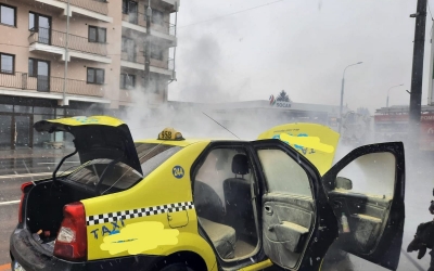 Un microbuz de transport marfă a luat foc, pe o stradă din Sibiu
