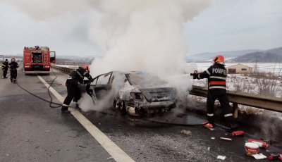 Mașină distrusă de incendiu. Focul a pornit de la un scurt circuit