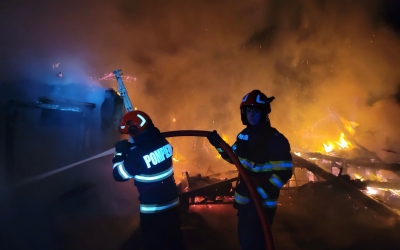 Incendiu puternic noaptea trecută la Șeica Mare: Au ars peste 1,5 tone de fân, dar și numeroase bunuri depozitate