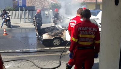 Mașină în flăcări pe Alba Iulia. Pompierii au stins focul imediat