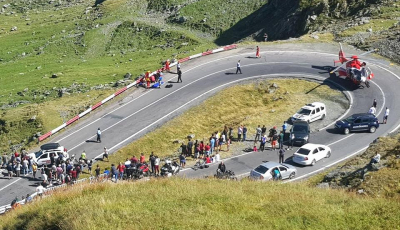 Foto Video. Un motociclist german, accidentat pe Transfăgărășan. Un elicopter SMURD a preluat victima