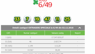 S-a câștigat marele premiu la 6/49. 3, 75 milioane euro