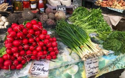 „Mesele s-au scumpit, dar noi nu scumpim”. Comercianții din Oltenia au adus verdețurile de primăvară în Piața Cibin