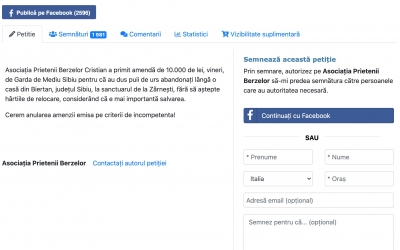 Petiție pentru anularea amenzii acordată Asociației Prietenii Berzelor. Aproape 2000 de semnături în 24 de ore