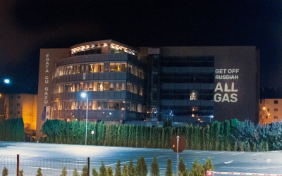 FOTO Activiștii de mediu, protest la sediul Romgaz din Mediaș: ”E gazul să plecați!”