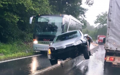 O mașină s-a oprit pe parapet, din cauza vitezei, la Hula Bradului