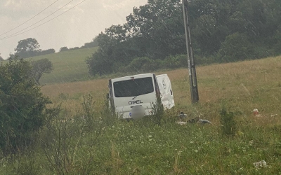 Două persoane sunt rănite după ce un microbuz de marfă s-a răsturnat, la Hosman