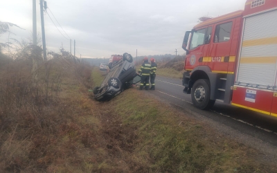 O mașină condusă din Poplaca spre Sibiu de un bărbat de 47 de ani s-a răsturnat. Pasagerul de 19 ani a ajuns la spital