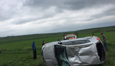FOTO - Accident spectaculos lângă Avrig. Din cauza vitezei s-a răsturnat pe câmp
