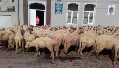 FOTO – Nemulțumiri mari la Vurpăr. Peste 300 de oi aduse în fața primăriei, în semn de protest