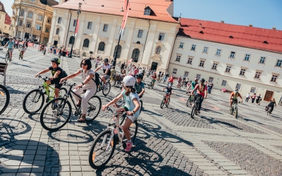 Turul școlilor pe bicicletă: aproximativ 300 de elevi, profesori și părinți din Sibiu pedalează joi, din Piața Mare până în Muzeul Astra