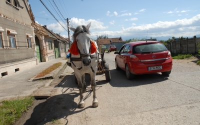 Accident pe DN14: o căruță condusă pe contrasens, lovită de o mașină, lângă Axente Sever