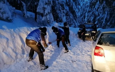 Un turist a fost salvat de jandarmi după ce a rămas blocat cu mașina în zăpadă