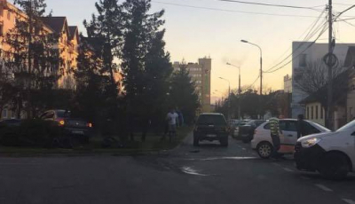 Accident pe Școala de Înot. O mașină a ajuns pe spațiul verde
