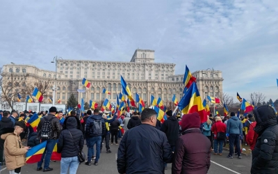 Aproximativ 40 de sibieni participă la protestul pentru susținerea lui Călin Georgescu, botezat „Marea unire juridică”