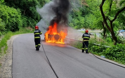 VIDEO O mașină a luat foc pe drumul care leagă Șeica Mare de Șeica Mică
