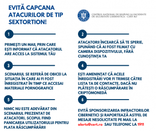 CERT-RO avertizează asupra unui val de atacuri de tip sextortion via e-mail, în România