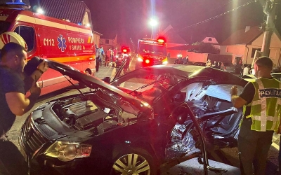 FOTO Cinci tineri răniți: șoferul drogat circula cu 125 de km/h prin Sibiu și a fost urmărit până în Cristian, unde a produs accidentul