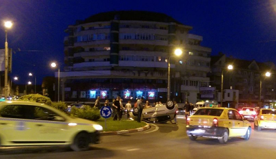 Neacordarea de prioritate, cauza accidentului cu mașina răsturnată din giratoriul de pe Alba Iulia