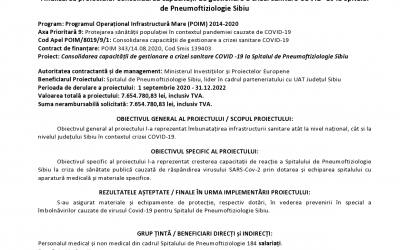 Consolidarea capacității de gestionare a crizei sanitare COVID -19 la Spitalul de Pneumoftiziologie Sibiu