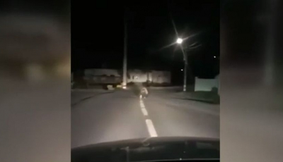 VIDEO – Un urs a ajuns azi-noapte în satul sibian Galeș. Turiștii l-au urmărit cu mașina