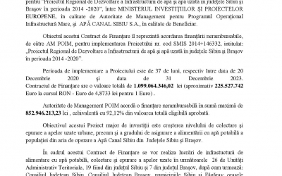 Apă Canal Sibiu SA accesează un nou proiect european, în valoare de 174 milioane de Euro, pentru infrastructura de apă și canalizare